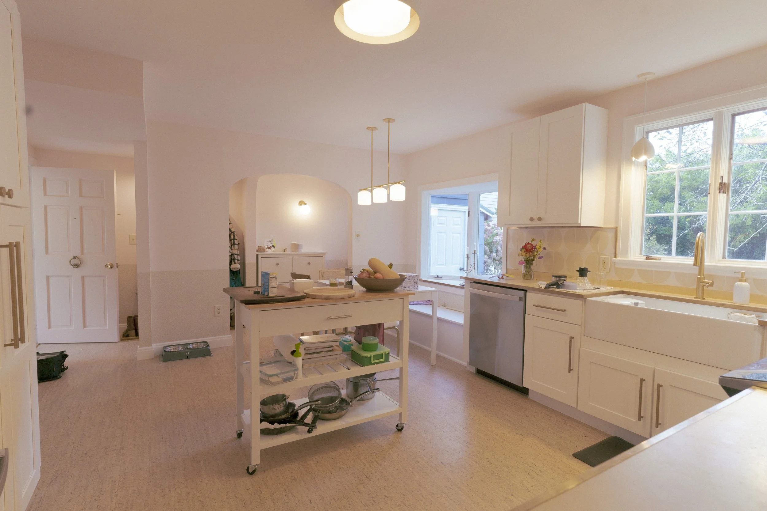 Design + Build for a kitchen in a 1910’s home in Vermont. Original kitchen layout was vastly expanded and a new mudroom area was converted from an old wash closet. The design focused on making a light space that isn’t sterile by using texture, pattern, and soft colors. A much needed change from the 1970s brown oak that proceeded it.