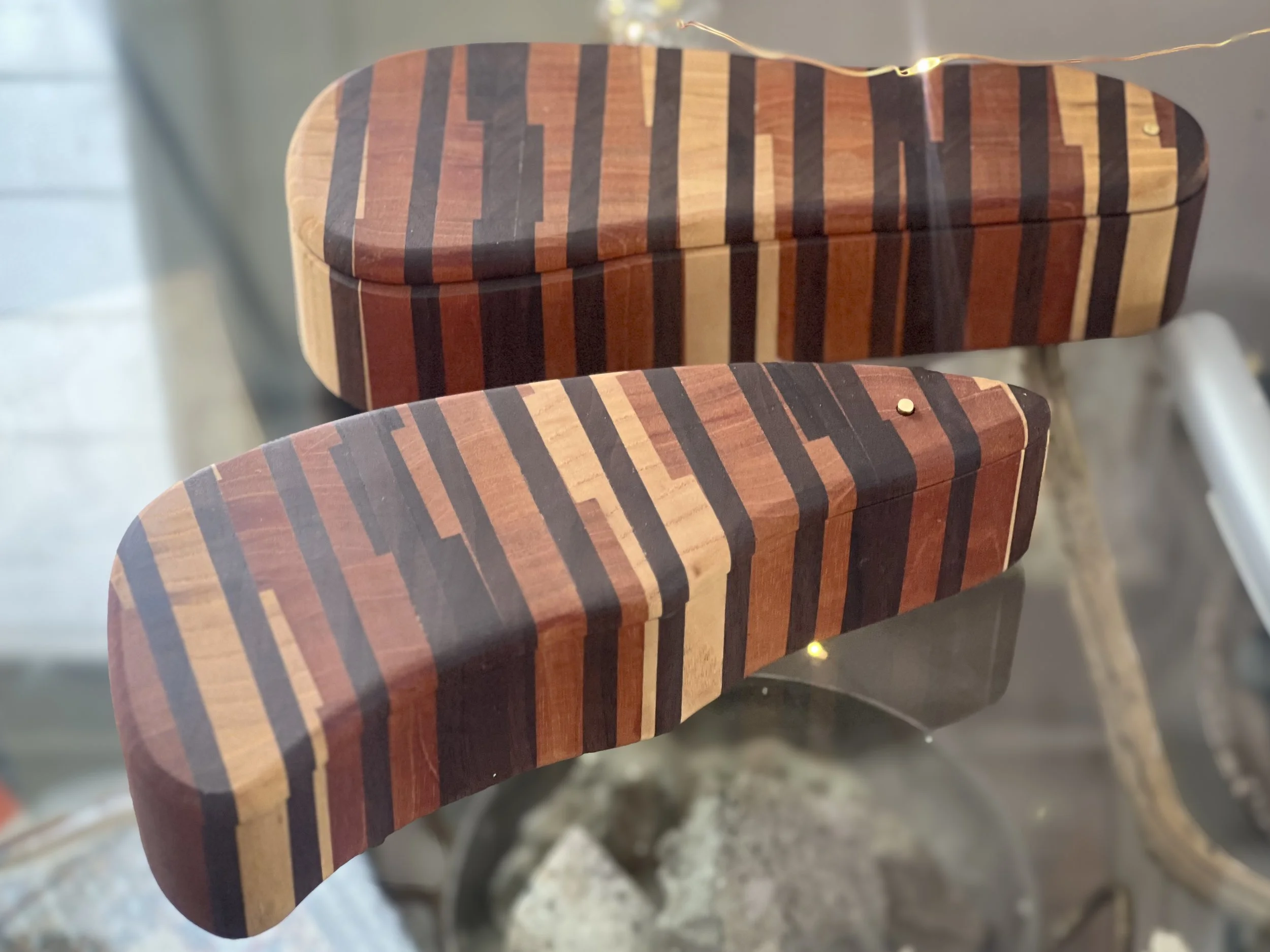 End grain boxes are an exercise in improvisation. Generally I pick a few scraps of wood, and start iterating on a pattern until Iām satisfied.